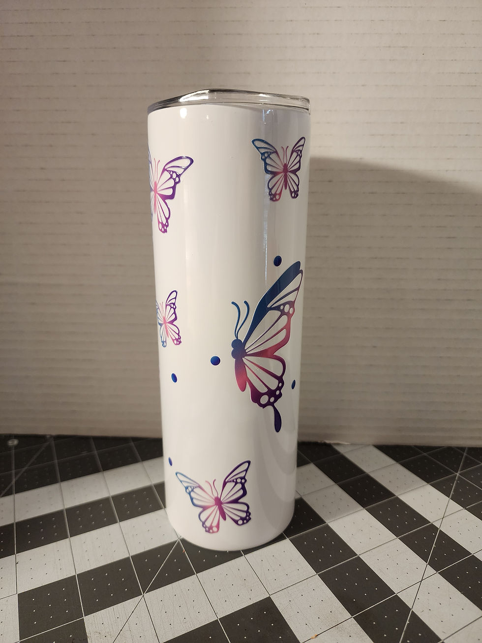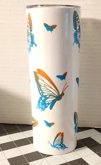 Tumblers that are double-walled and insulated so drinks stay cold up to 12 hours. Each with its own unique design. 20 OZ skinny tumblers. Come with a reusable lid, straw, and cleaning brush!…