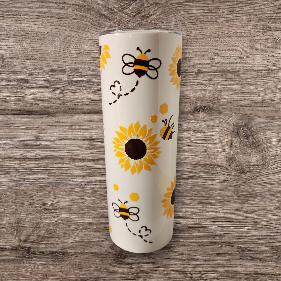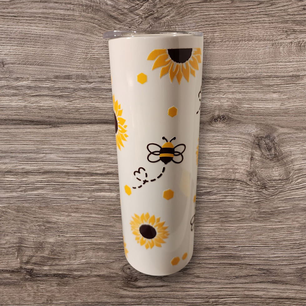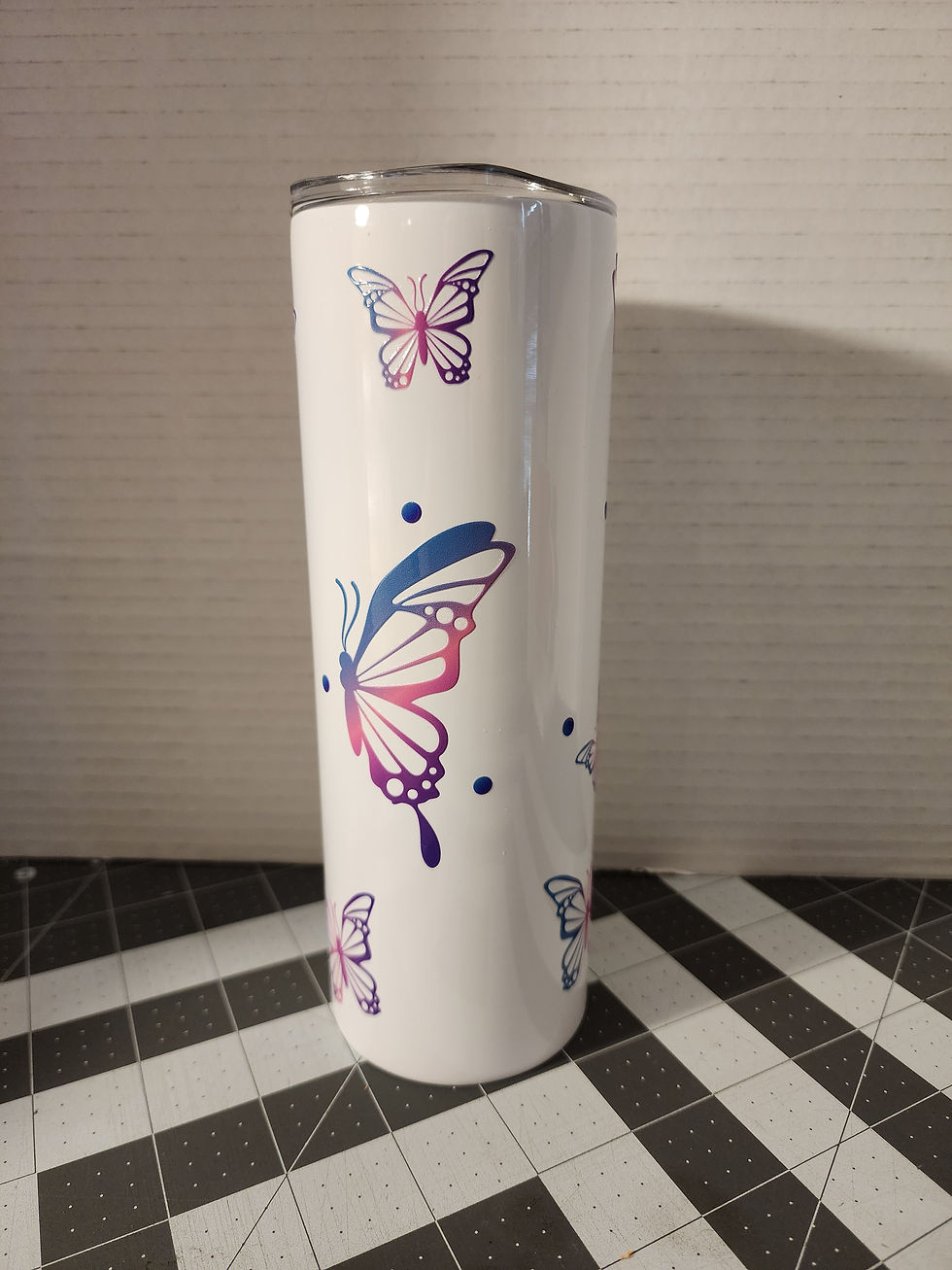 Tumblers that are double-walled and insulated so drinks stay cold up to 12 hours. Each with its own unique design. 20 OZ skinny tumblers. Come with a reusable lid, straw, and cleaning brush!